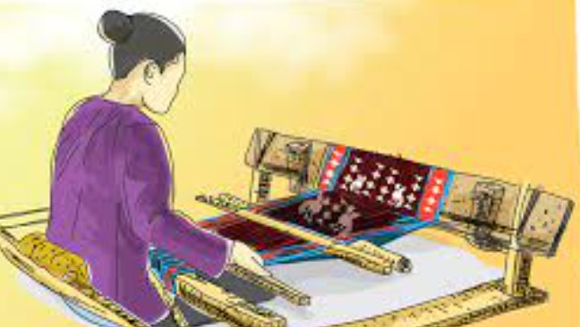 Aku mengambil nandiah untuk meletakkan benang yang akan digumpal ke tabung. Selanjutnya, dipindahkan ke bulua menggunakan kincia. Seperti biasa, Amak duduk di panta dengan kaki di tijak-tijak, sibuk menganyam benang dengan bantuan lidi, lalu terdengarlah “plak! plak! plak!” seirama dengan gerakan kaki Amak. Aku juga merancang sebuah masker kain dengan motif garis-garis abstrak. Sebuah padu padan nan indah. Aku berharap masker dan rompi ini selesai sebelum lomba dilaksanakan. Aku dan Amak menikmati senja ini dengan perasaan lega dan puas akan pekerjaan kami hari ini.
